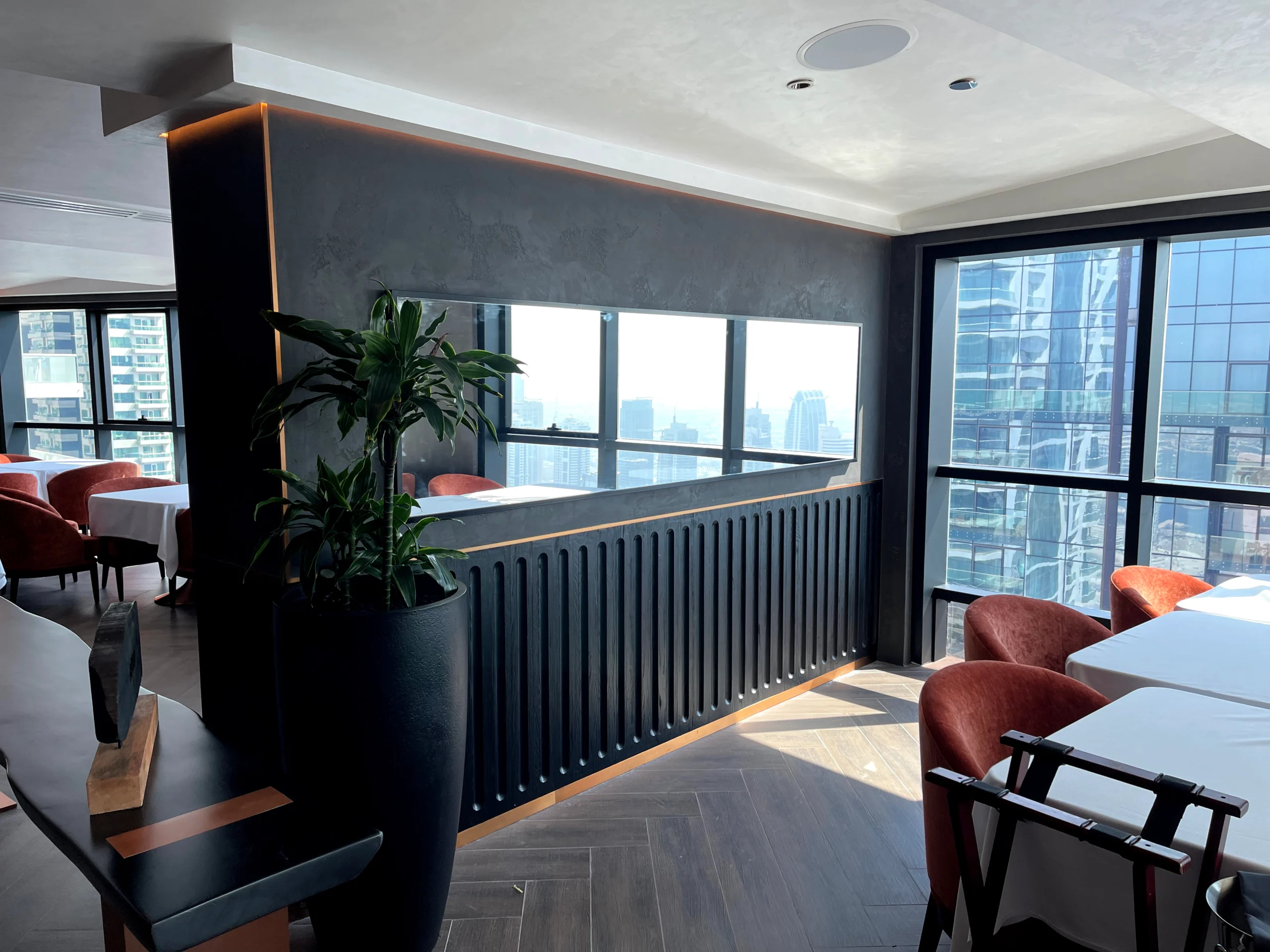 بدءًا من المفهوم 52 Observatory Lounge Prime تم تكليف اليودورا بتصميم وتنفيذ ديكور مطعم التصميمي وحتى التفاصيل الدقيقة في الأثاث الإضاءة واللمسات الجمالية